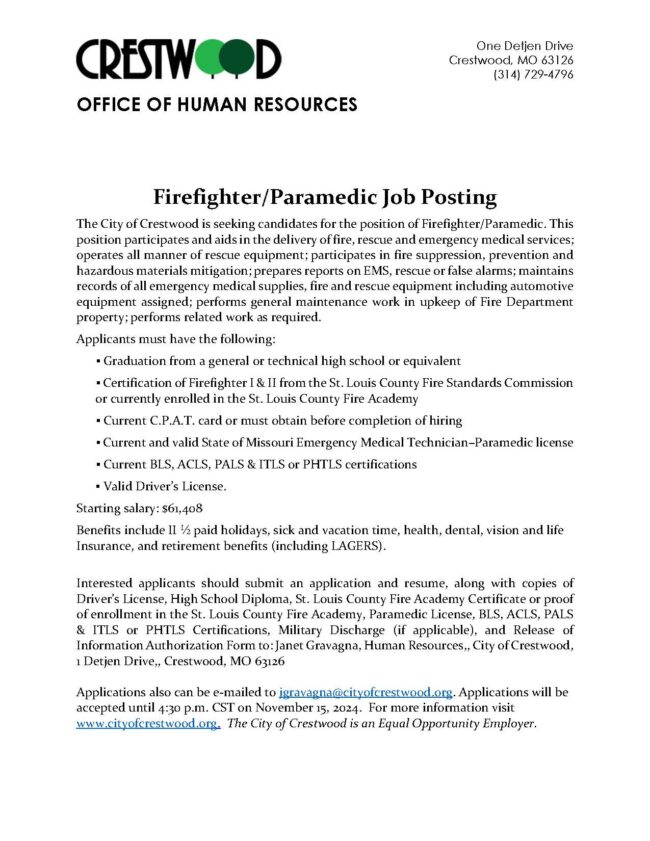 Affton FPD Firefighter-Paramedic Hiring Notice